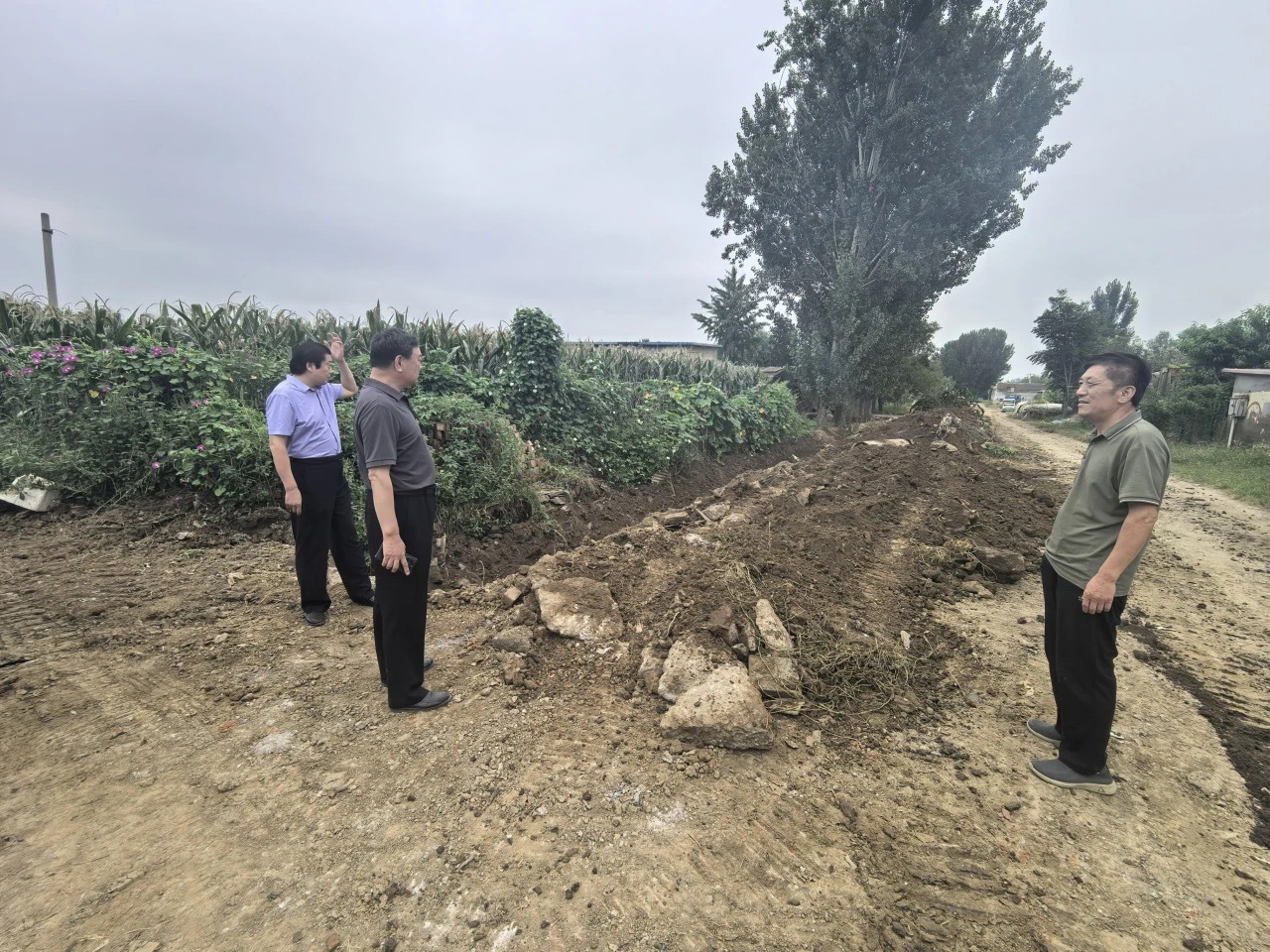为解决这一难题,东高村村党总支积极应对,组织村两委干部现场勘察,最后商议决定立即启动400余米排水沟渠的修复工程,清理排水沟及铺设水泥管道。