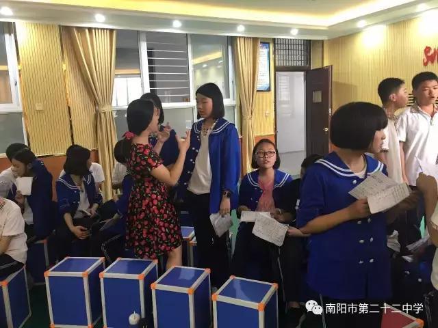 为纪念中国共产党成立96周年,在广大未成年人中唱响共产党好、社会主义好、改革开放好的主旋律,南阳市教育局、南阳市文明办联合开展了“童心向党”歌咏比赛活动,南阳市二十二中领导高度重视,在德育处的积极组织、音乐组老师的精心辅导下,以七年级学生为主的合唱团利用下午自习课时间进行紧张周密的排练,日前在后勤、设备组的协助下,在我校演播厅完成录制。