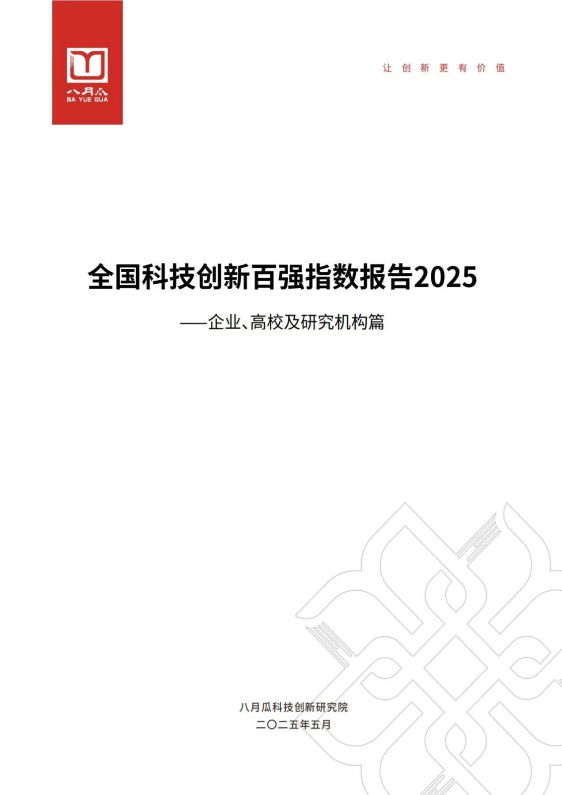(记者 武奕)5月30日,《全国科技创新百强指数报告2025》在京发布。此次是八月瓜科技创新研究院连续第七年发布该报告,为洞察全国科技创新态势提供重要依据。
