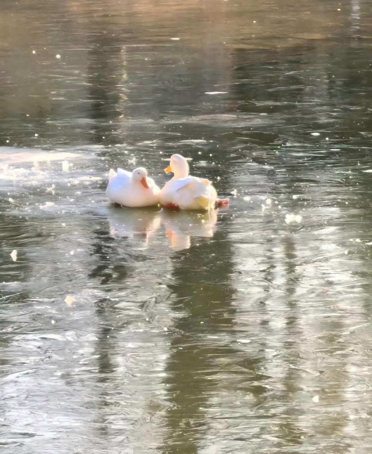吕先生:有一只应该是没被冻上,我们破冰的时候它自己走了,被冻住的那只已经被我们送到阿奇瑞·萌宠友好园了。