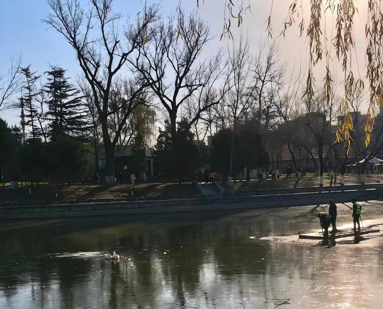 杨队长:这几年生态环境好了,我们公园不仅会来野鸭子,还有鸳鸯、各种鸟类……我们其实平时也兼顾着保护动物的职责。