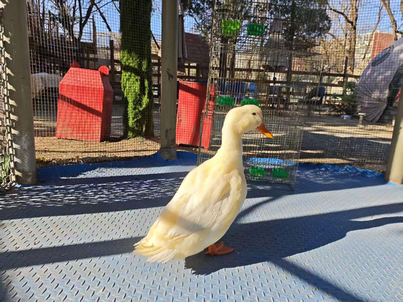 这场救援并没有在靠岸时结束,工作人员第一时间把这只鸭子送到了园内的阿奇瑞·萌宠友好园,请那里的专业人士检查它的身体。上午11点,在萌宠友好园内,记者见到了这只获救的鸭子。它被工作人员妥善地安置在单独的区域内,工作人员张老师说: