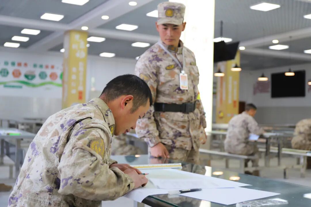 室内室外,一场场比赛激烈展开。5公里武装越野赛道上,官兵们负重疾驰,展开耐力与意志的比拼;手榴弹投掷课目,官兵们无惧高原严寒,动作干净利落;作战标图课目,官兵们笔尖游走于地图上,精准研判标绘……