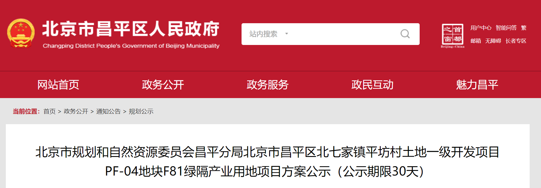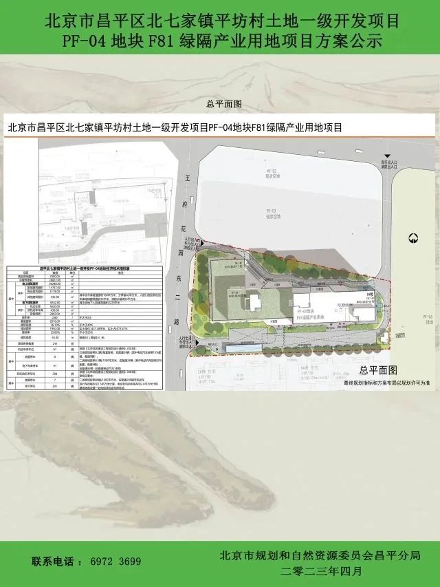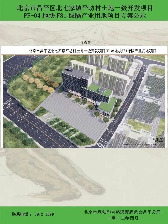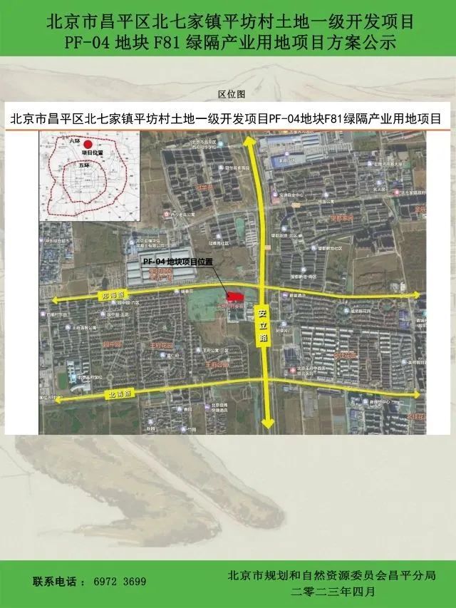 近日,北京市规划和自然资源委员会昌平分局发布了北七家镇平坊村土地一级开发项目PF-04地块F81绿隔产业用地项目方案公示(公示期限30天)。