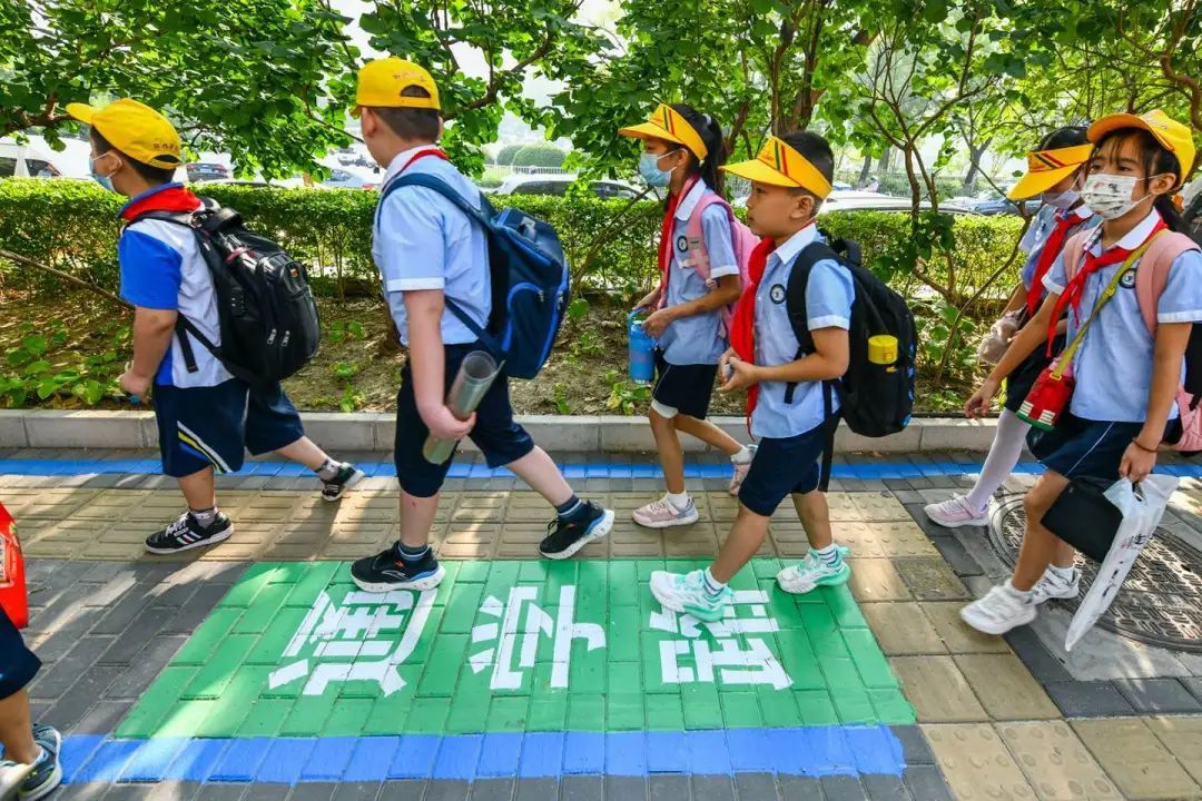 校门前施划“通学路” 下车进校园一路畅行_北京时间