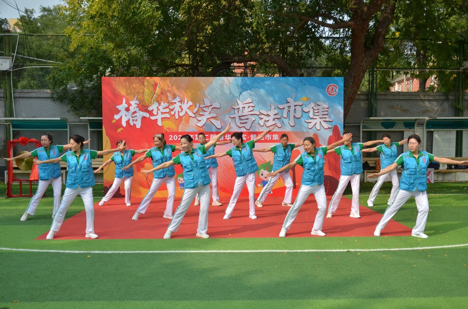 活动开始,由10余名普法志愿者带来的《法韵椿树》健身操拉开序幕,充分调动起全场欢快氛围。在伴随着一声悠扬深厚的锣声之后,也正是宣布着椿华秋实·普法市集活动正式开幕。