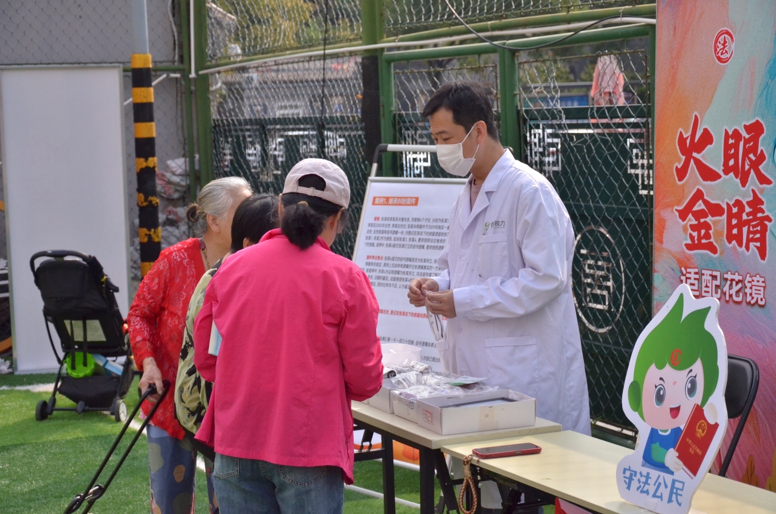 此外,“护你平安”、“拍案说法”、“火眼金睛”三个生活服务区域,社区矫正人员以及地区小微企业为居民提供手机贴膜、肩颈按摩、适配花镜服务,居民在享受服务的同时,学习反诈、防诈相关法律知识,认识熟悉生活案件,既获得了身心愉悦,又得到了精神学习的充实。