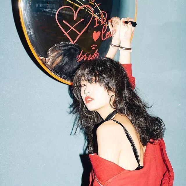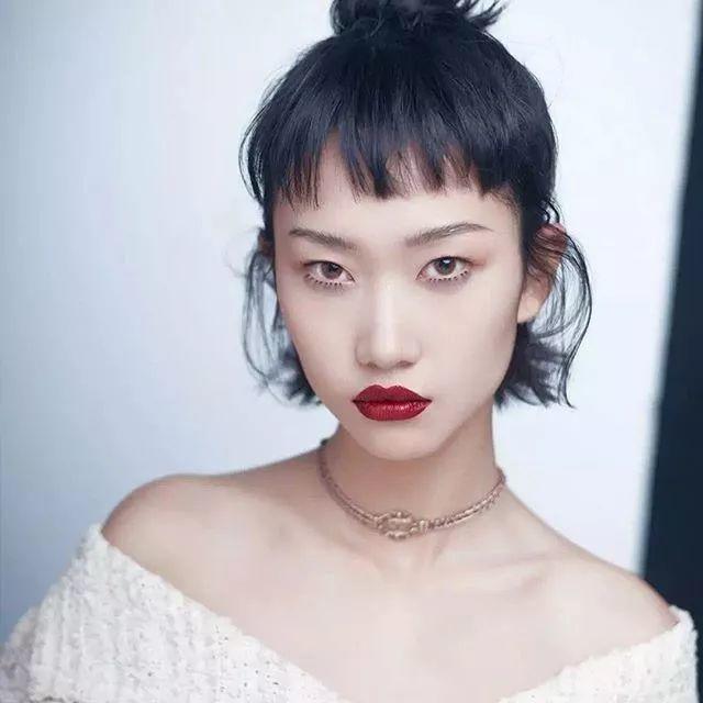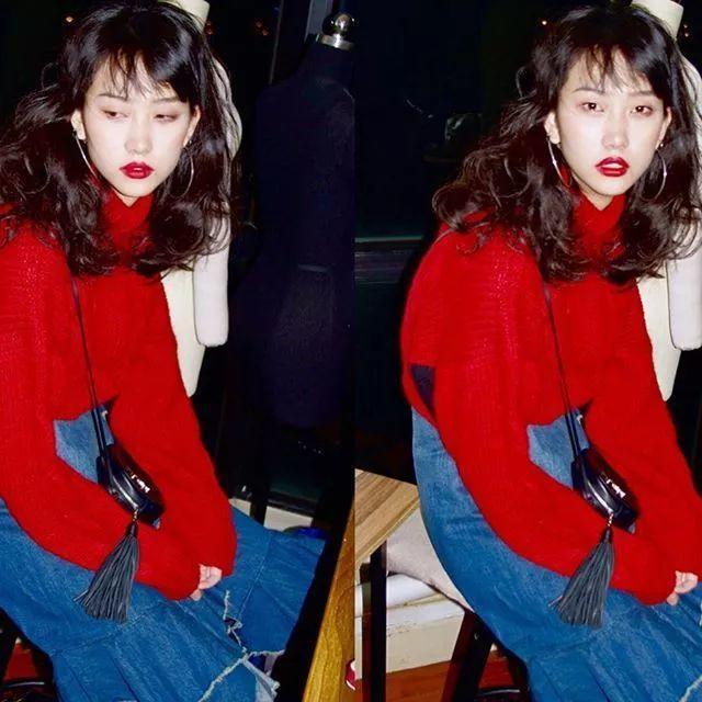 镜头下的她总是很高冷,烈焰红唇+眉上刘海这样的造型仿佛都是为她量身定做的,莫名适合她。