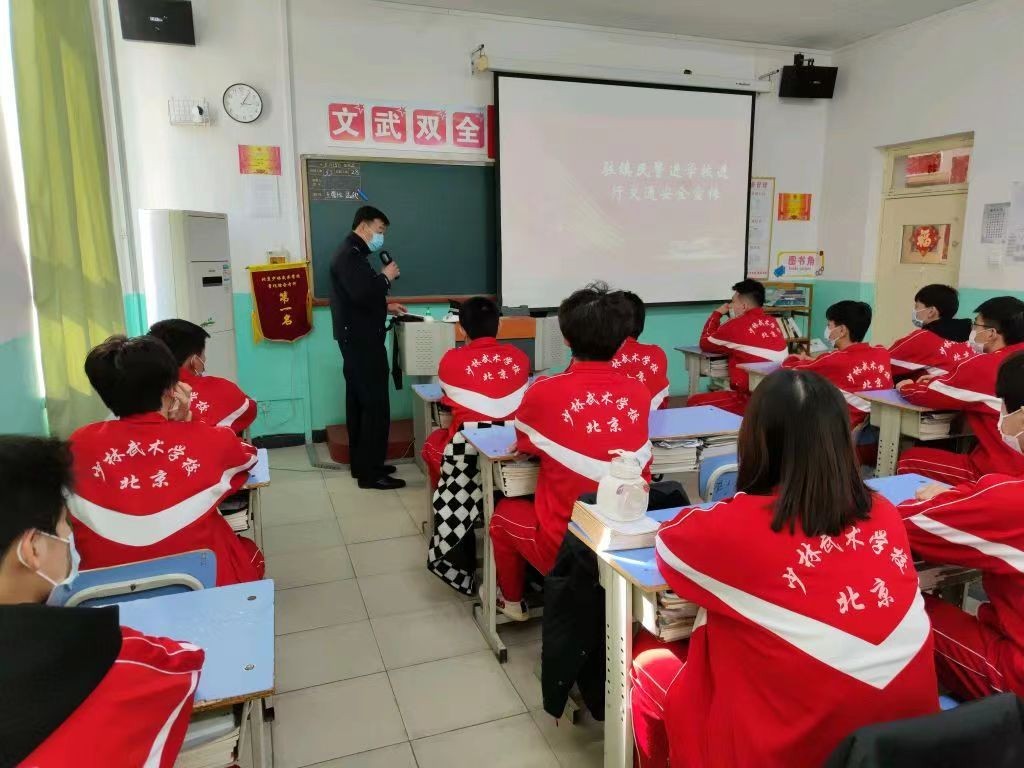 为切实提升学生群体交通安全意识和自我防范能力,近日,昌平交通支队回龙观大队民警走进北京少林武术学校,为学生们讲授一堂生动的交通安全课。