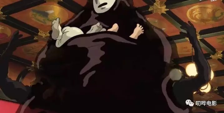 就在大家为千寻庆祝的时候,一个诡异的无脸男静静的在角落里看着她,之前因为千寻的好心将它放进汤屋,无脸男便一直跟在她身边,一味的讨好她。