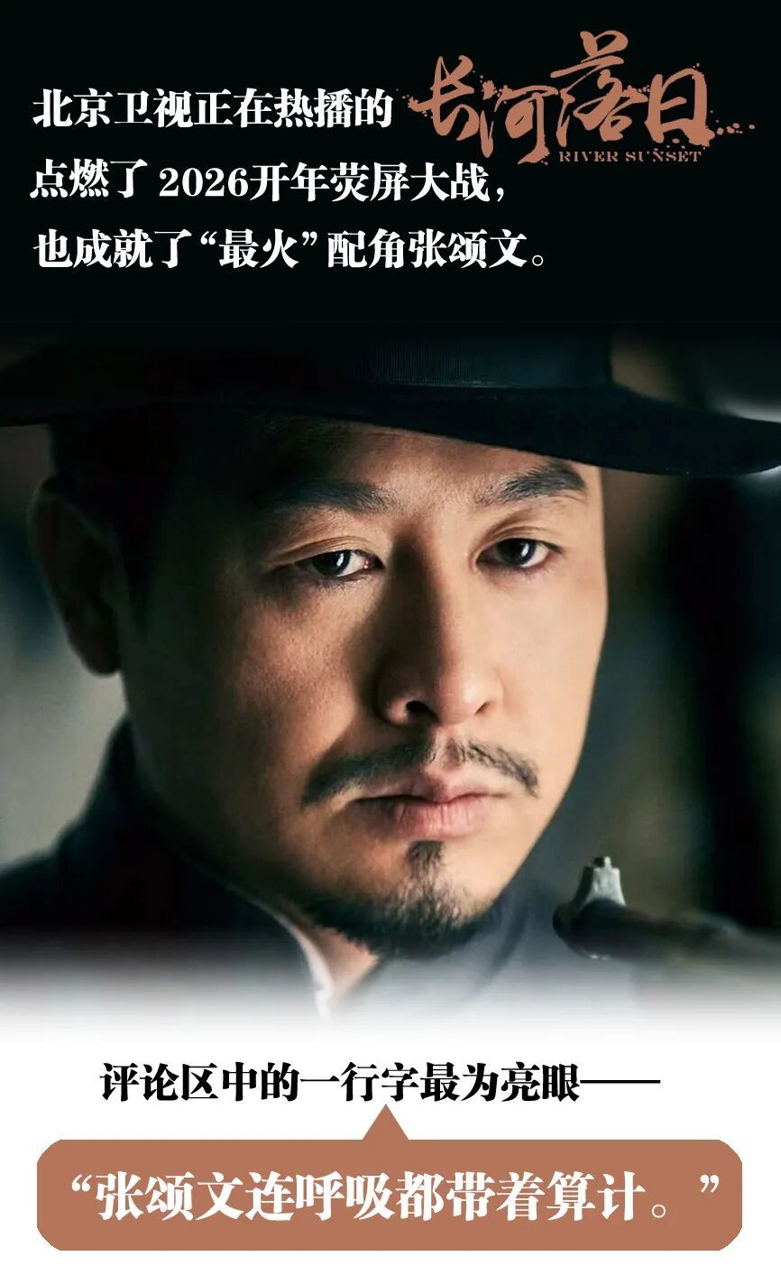 《长河落日》中,张颂文饰演的沈处长一登场就引人关注,仅凭一个“笑意未达眼底”的眼神就表现出角色的性格特点。张颂文在剧中的戏份不多,却凭借多个这样“于无声处见惊雷” 的细节,成为剧集收视的“定海神针”。