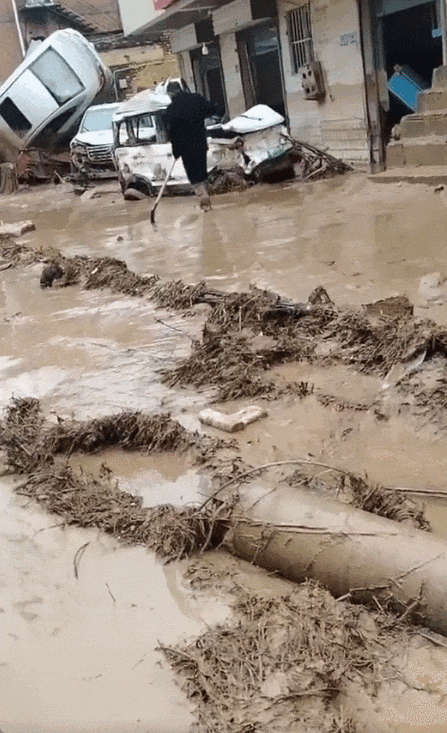 陕西志丹县遇强降雨,积水将多辆汽车冲走。(图源自网络)