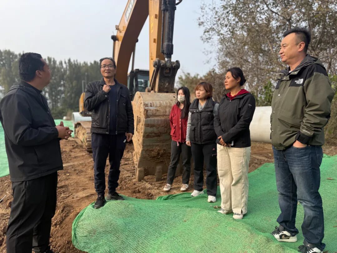 区人大代表米莉(右二)会同崔村镇工作人员、施工方实地查看工程进度