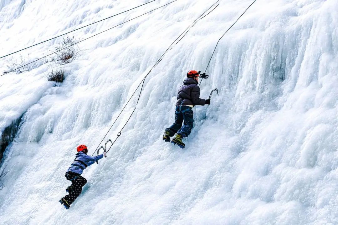 当然,桃源仙谷也是攀冰爱好者的好去处。桃源仙谷潭瀑众多,山峰雄伟,宽100米、高55米的桃源冰瀑,可供专业、业余攀冰选手进行表演、训练和比赛;稍低一些的叠翠潭冰瀑高30米,可供攀冰爱好者作为高难度攀冰表演和决赛;学生攀冰区宽6米、长30米,沿着大小不同的冰瀑,挥动冰镐,向上攀登。
