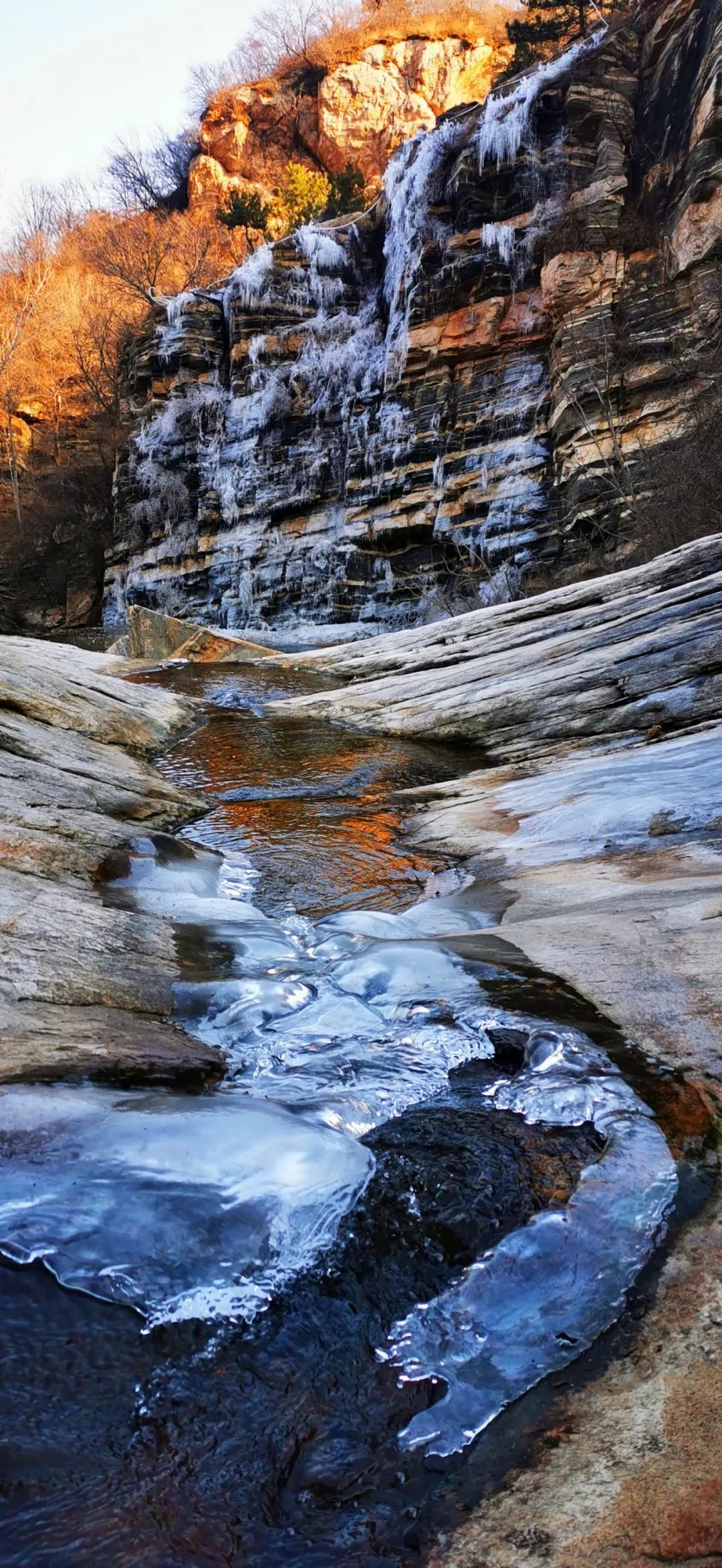 黑龙潭风景区,位于密云区大关桥西侧峡谷之中,这里散落着三瀑十八潭,林壑秀丽,景色宜人。每一处潭水在冬季的凝冻下,都化作了一道道绝美的冰瀑,为游客呈现出一幅幅如诗如画的冰雪画卷。