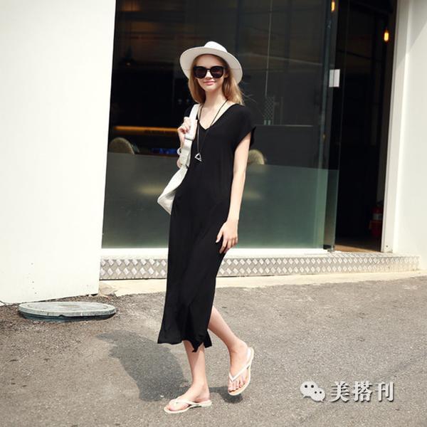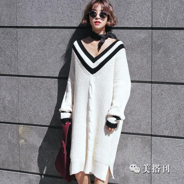 领口开的越大,越容易和脖子形成一体,视觉上起到肩部变窄的效果,同时还可以延长颈部线条。大领口下展露出迷人的锁骨,别人自然既不会把注意力放在肩膀上了。所以,V领是肩宽妹子的不二之选。