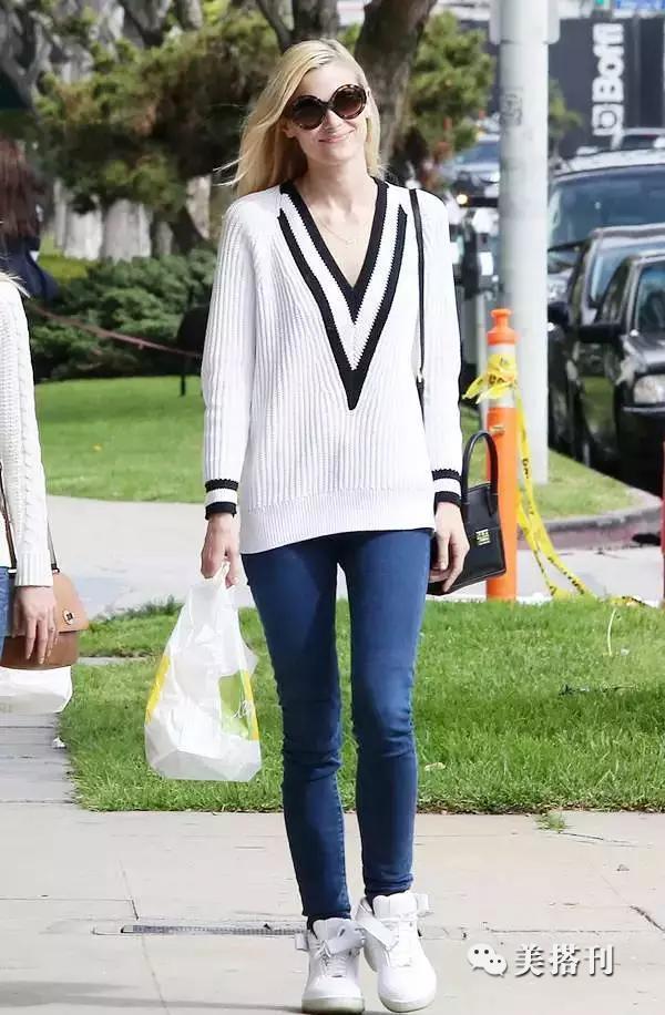 V领能将人的视觉上移,有“纵向拉伸、横向收缩”的效果,所以是修饰宽肩的最佳法宝。V领衣服本身还带有性感、随性的感觉,而且不会太过暴露。