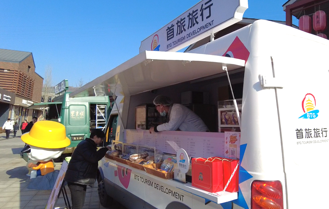 沿路前行,年味愈浓。在下沉广场,三辆老字号美食车惊喜亮相,全聚德、东来顺两大京味老字号坐镇,联动莫斯科餐厅面包坊,把地道美味直接搬到长城脚下。