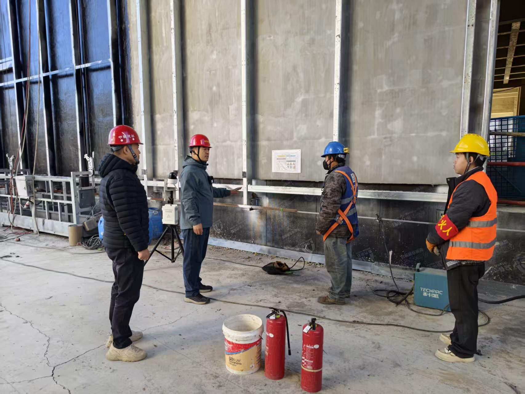 检查组首先查看了工地外围的消防疏散通道与消防救援通道是否保持畅通,并详细检查了消火栓、消防器材的配备情况,确保各类设施设备完好有效。随后,检查组进入工地内部,对动火作业点位的监督保障措施落实情况进行了检查,并现场叮嘱施工人员严守作业纪律。此外,检查组还对工地消防管理制度和应急预案的制定情况以及动火作业在“企安安”系统上的报备情况一并进行了核查。