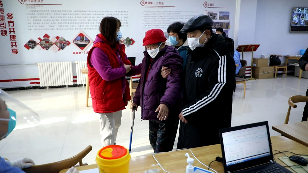 据门头沟区月季园东里社区党委书记孟严说,老人90岁了,之前在山上住,回社区以后老人跟社区提出愿意接种,所以社区就赶紧把她接过来了,正在观察的石明花老人说道:“多好啊,说明大家都关心我!”