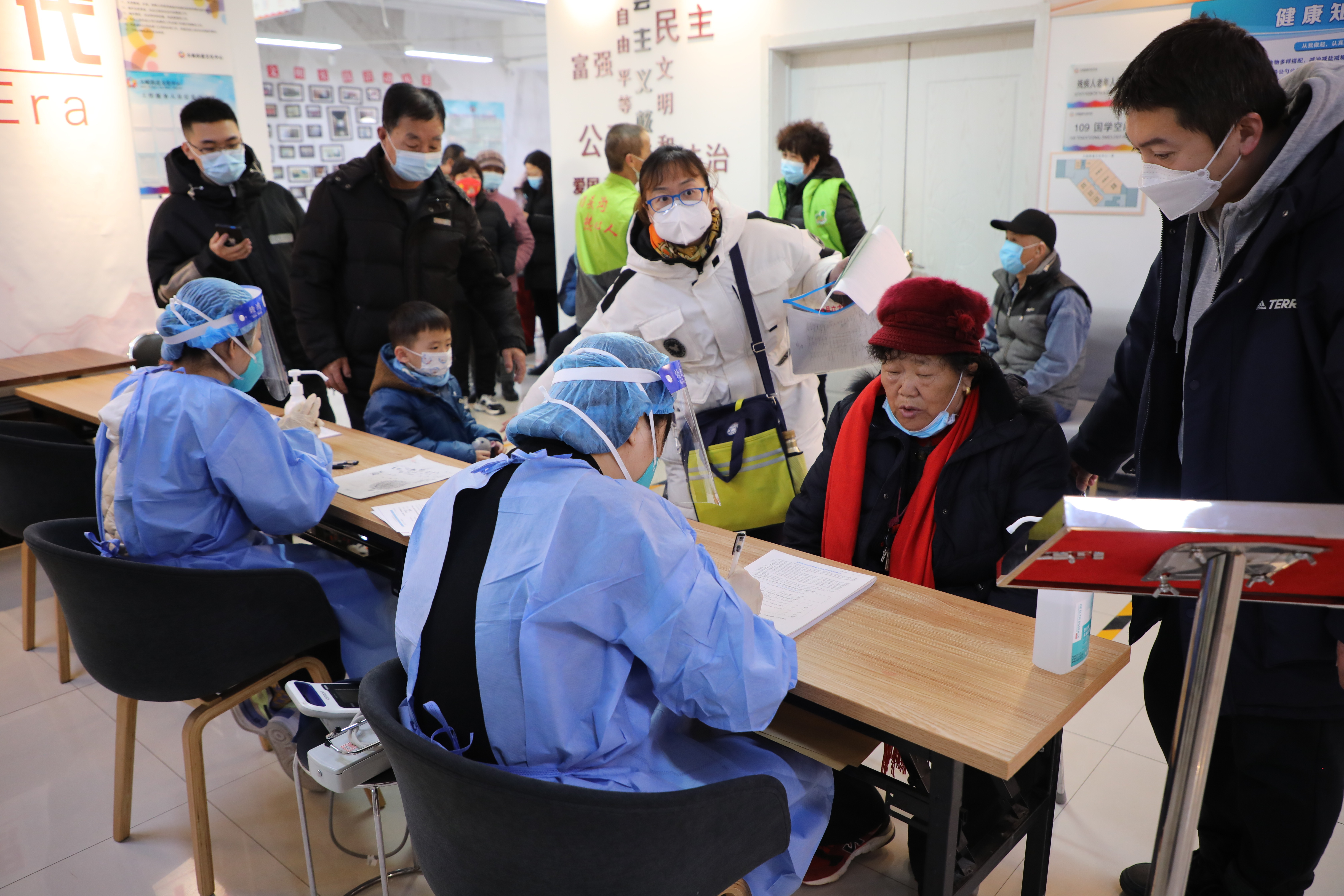 为有效推动疫苗接种工作,大峪街道各社区都拿出了自己的绝招,社区门口儿支摊儿、入户动员等方式,设置了60岁以上老人接种专区以及绿色通道,组织了志愿服务队为老人提供全程的服务等等。