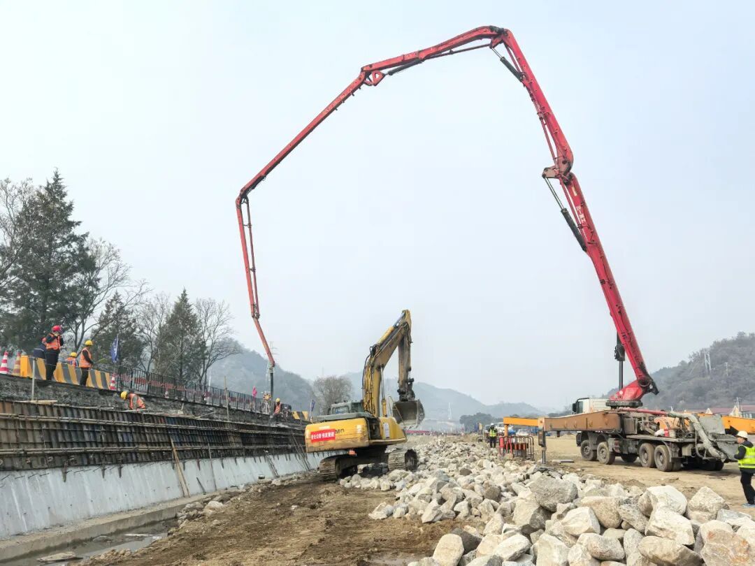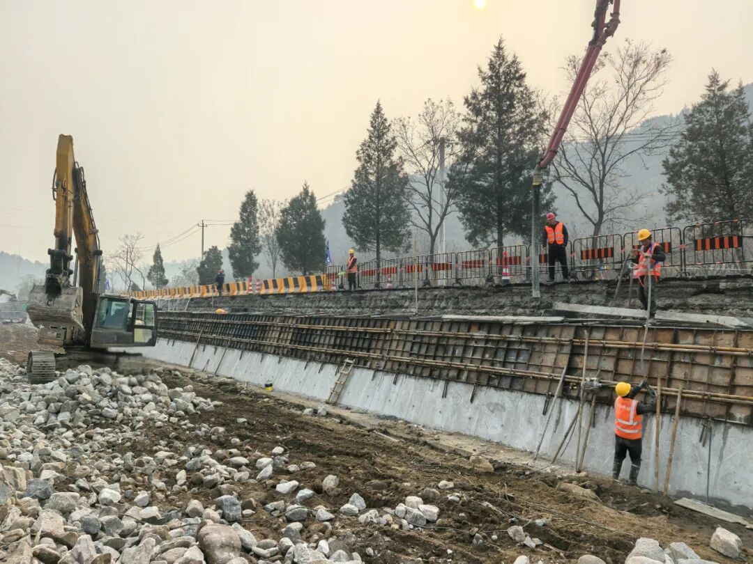 位于冯家峪镇的西火路串联着石洞子村、西白莲峪村等18个行政村,是冯家峪镇的“生命线”,这次受损最严重的公路之一。本次恢复重建修复总长约15.5公里,包括新建番字牌桥、白马关桥、高庄子桥、冯家峪小桥共4座桥梁,重铺沥青混凝土面层约8.6万平方米、片石混凝土挡墙10.8万立方米。为加快工程进度,目前全线有29个点位同步施工,现场投入施工机械50余台、施工人员400余人,目前正在进行片石混凝土挡墙和桥梁下部结构施工,工程总体形象进度13%,预计到2025年年底,可完成40%。