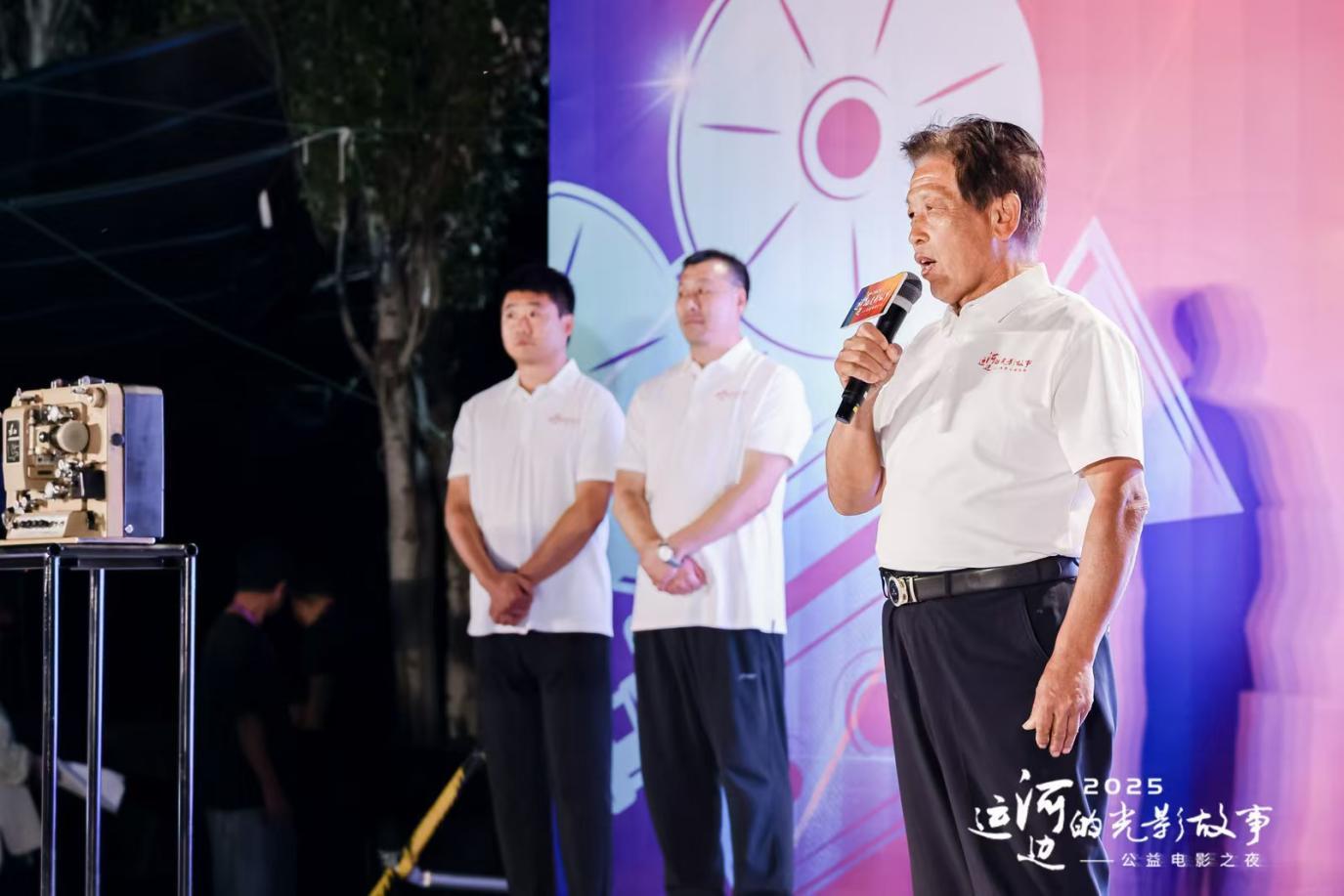 在活动上,正式启动了“运河边的光影故事”公益电影之夜主题活动,发布了《银幕守护者》微纪录片。纪录片展现了通州区公益放映员的日常工作与感人故事,参与纪录片拍摄的老中青三代公益放映员代表张家湾镇韩德成、西集镇孙明志、临河里街道魏征分享与运河相伴,为市民放映电影的温暖经历。3位放映员携带老照片、老放映机等信物登台,并围绕放映工作带来质朴、动情的讲述,引发了现场来宾的强烈共鸣。