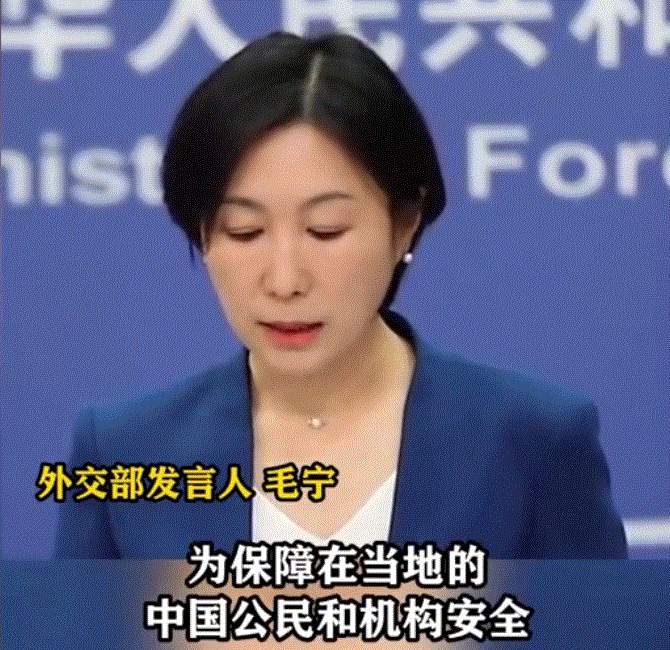 紧接着一个片段显示,中国外交部发言人毛宁25日在例行记者会上说,中国驻苏丹使馆坚守岗位,密切关注形势发展变化,为保障在当地中国公民和机构安全全力提供支持协助。在有危险撤离时,使馆永远撤在最后。外交部也将采取有效措施保障使馆人员安全。
