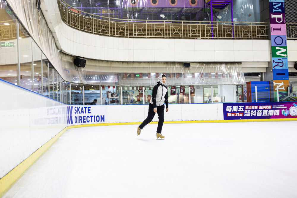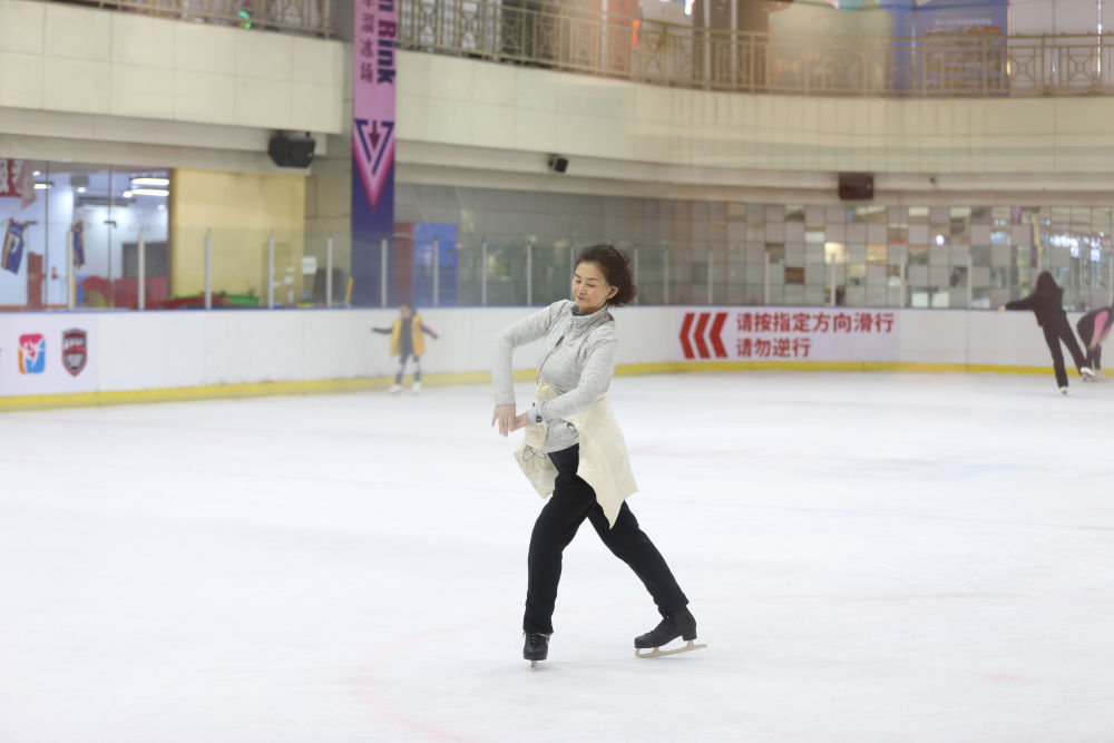 她再次穿上了冰鞋,在冰场上回顾着曾经重复无数遍的动作,找寻着几十年前熟悉的感觉。