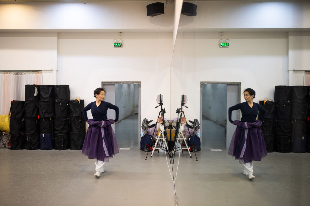 2021年12月16日,曲薇在舞蹈训练中练习。