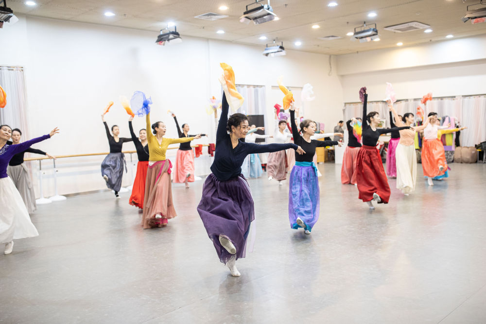 2021年12月16日,曲薇(中)在舞蹈训练中。