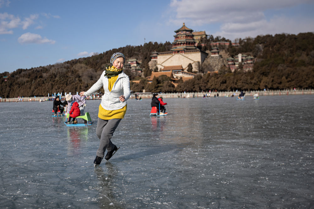 火红的灯笼高高挂,冰上的人儿笑哈哈。颐和园的冰面上,人们坐着冰车从佛香阁前驰骋,冰刀划过,留下的冰屑伴着北风,敲打着昆明湖的表面,如铃一般,奏出一段美妙的冬日序曲。