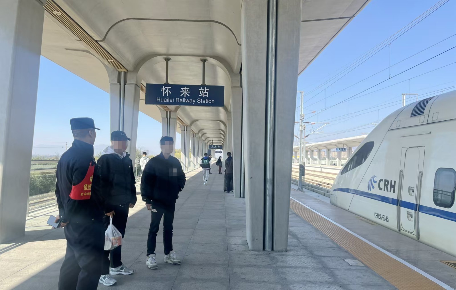 据太子城站派出所所长邢嘉介绍,10月15日8时许,派出所指挥室接到D1024次(呼和浩特东至清河)列车乘警通报,男子崔某报警称自己15岁的儿子小崔离家出走了。按照崔某提供的特征,乘警在列车上找到了小崔,并通知派出所派人在怀来站做好接车准备。了解情况后,邢嘉立即通知怀来站警务区民警辅警前往站台准备接车。没过多久,指挥室又接到列车乘警通报,称在D1024次列车上又发现3名和小崔一起离家出走的男孩,赵某和小崔一样都是15岁、李某和张某则是16岁。