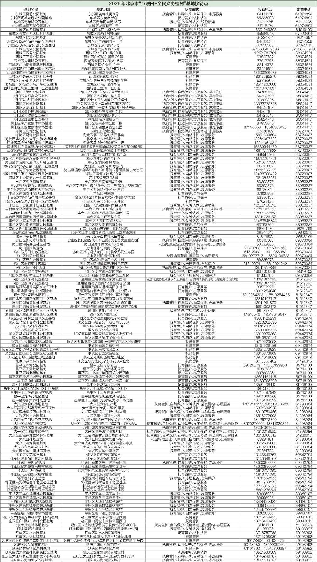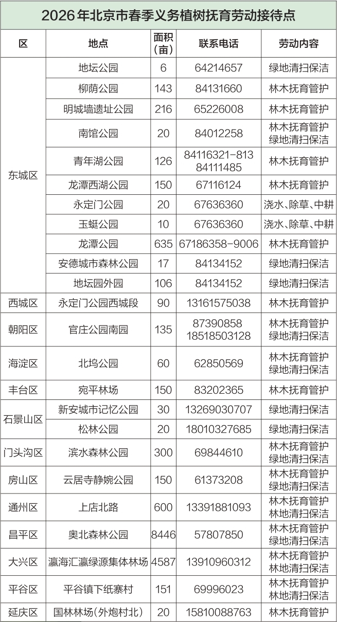 首都绿化委员会办公室公布2026年春季义务植树尽责接待点