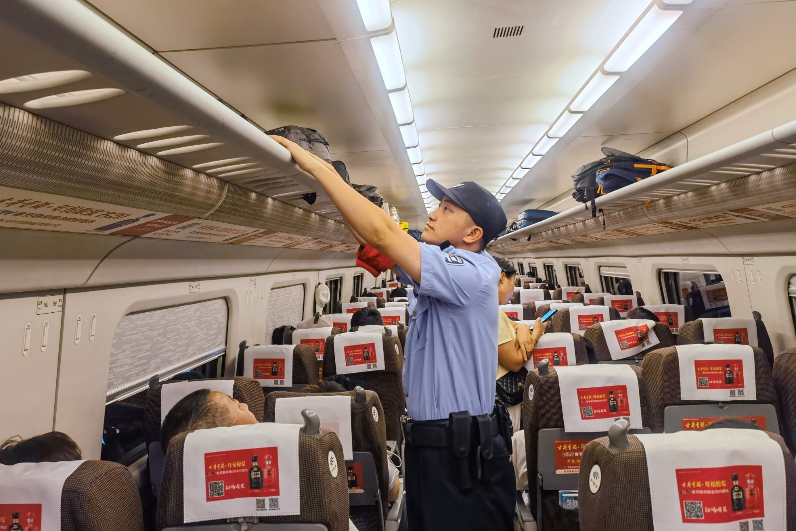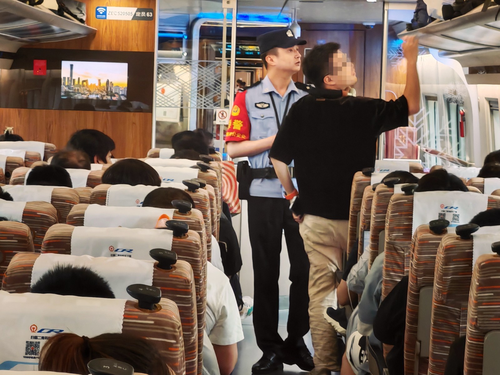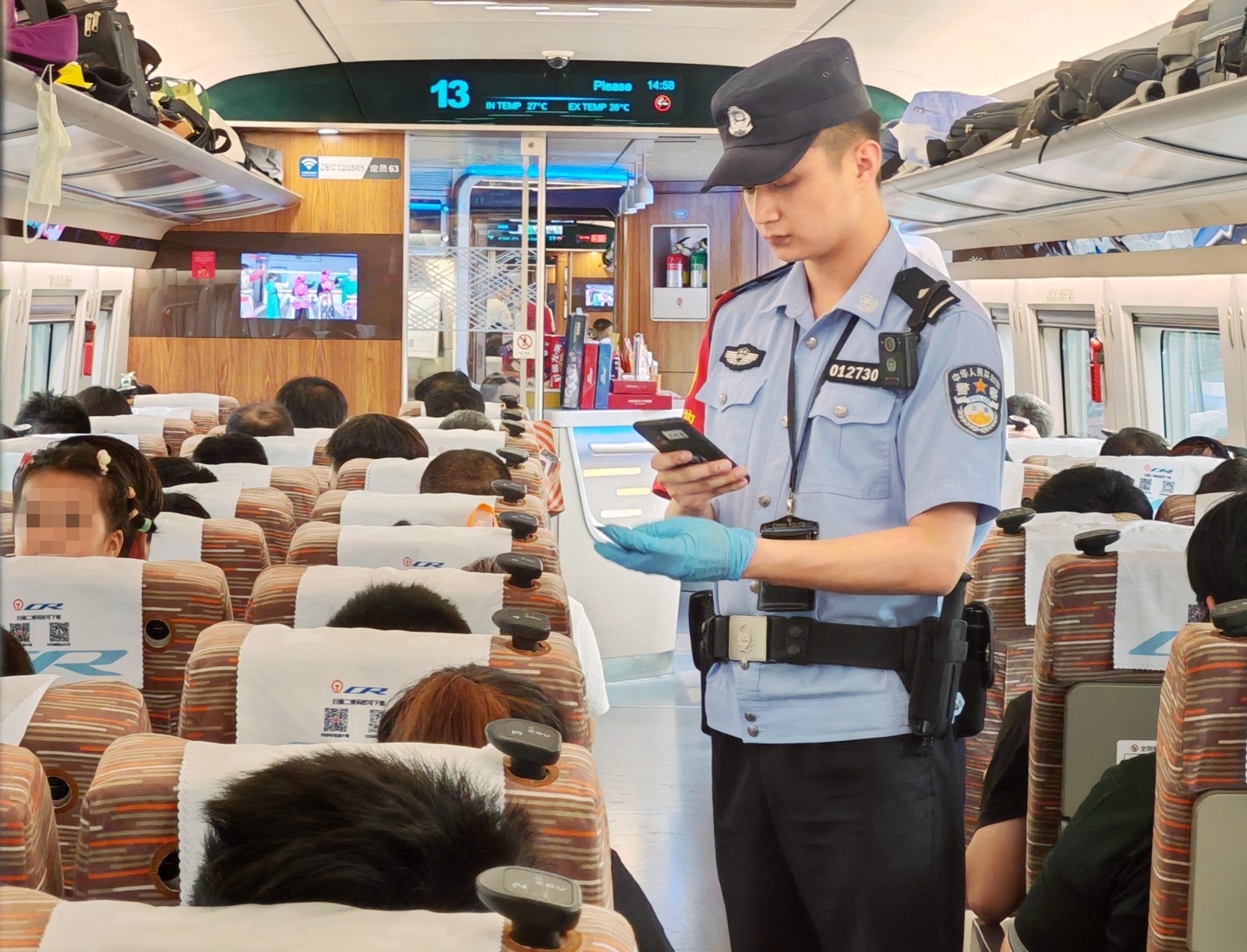 据乘警支队相关负责人介绍,进入暑运以来,乘警支队积极组织开展“夏季治安打击整治行动”和“三打三防”专项行动,持续强化列车查缉工作和列车重点部位的排查检查。同时,还联合列车工作人员开展途中巡视和长途列车夜间巡查工作,及时消除不安全隐患。截止7月14日,暑运两周共处理醉酒滋事、高铁吸烟等治安案件32起,查获网上在逃人员1名,组织宣传小分队开展车厢防盗防骗防诈安全宣传20余次。7月7日,男子曹某(52岁)乘坐赣州开往北京丰台的D140次列车时,站在车厢洗手池旁吸烟被列车工作人员发现及时制止,未引起烟雾报警器报警。列车乘警闻讯后及时处置,途中移交给麻城站派出所处理。7月5日,在丹东开往北京的K28次列车上,男子刘某(53岁)在列车上醉酒滋事,严重扰乱列车治安秩序,后被列车乘警带离处置。途中,乘警将刘某移交给沈阳站派出所处理。7月3日,北京朝阳开往赤峰的G3663次列车运行至平庄至赤峰区间时,列车乘警在车厢里查获了一名在逃人员。经查,该男子叫魏某(39岁),因涉嫌掩饰、隐瞒犯罪所得、犯罪所得收益案,被公安机关网上通缉。列车到达终点赤峰站后,乘警将魏某移交赤峰站派出所处理。