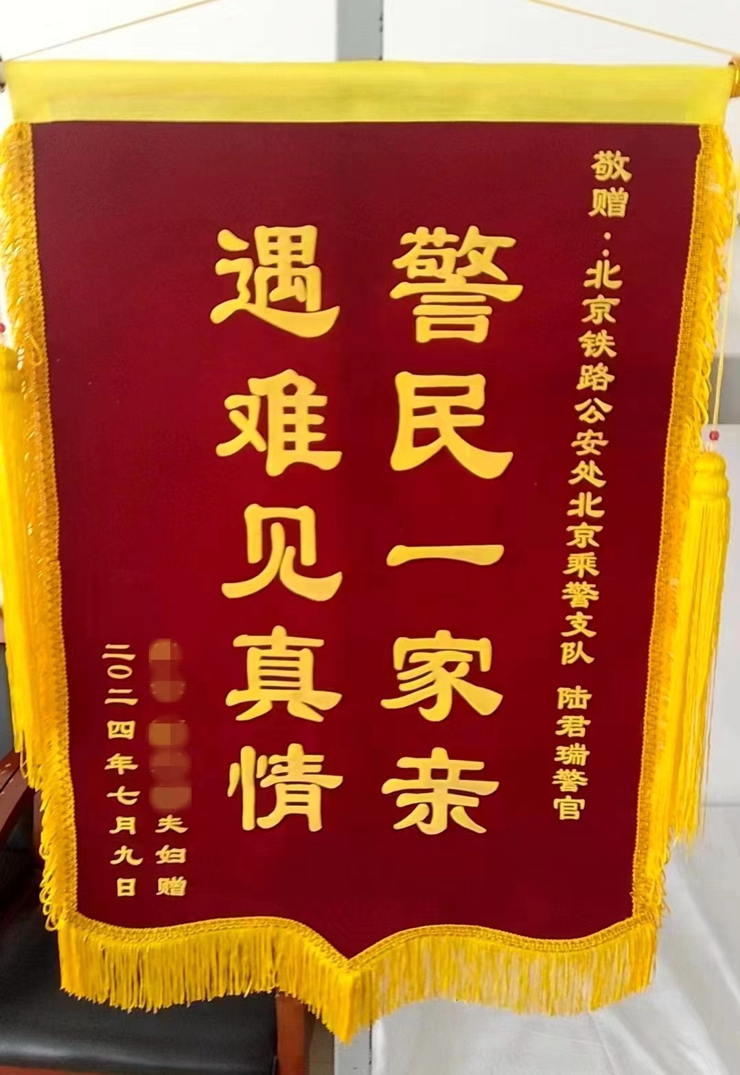 据了解,暑运期间,乘警支队党总支部还积极组织党员民警开展便民服务,为旅客找回遗失、拿错的行李物品64件、价值7万余元,找到离家出走的未成年人1名,收到旅客赠送的锦旗3面。7月8日22时许,大同南开往北京北的G2550次列车运行至宣化北至清河区间时,列车乘警接乘警支队警情通报,一名15岁女孩因与家人闹矛盾离家出走了,家长称孩子可能在G2550次列车上。了解情况后,乘警立即在列车进行查找,并最终找到离家出走的女孩。途中,乘警对女孩进行了耐心的劝说,并及时向女孩的家长报了平安。G2550次列车到达终点北京北站后,乘警将女孩移交给站台上接车的北京北站派出所民警。7月9日上午,女孩的父亲专程来到乘警支队,亲自送上锦旗来表达全家的感激之情。