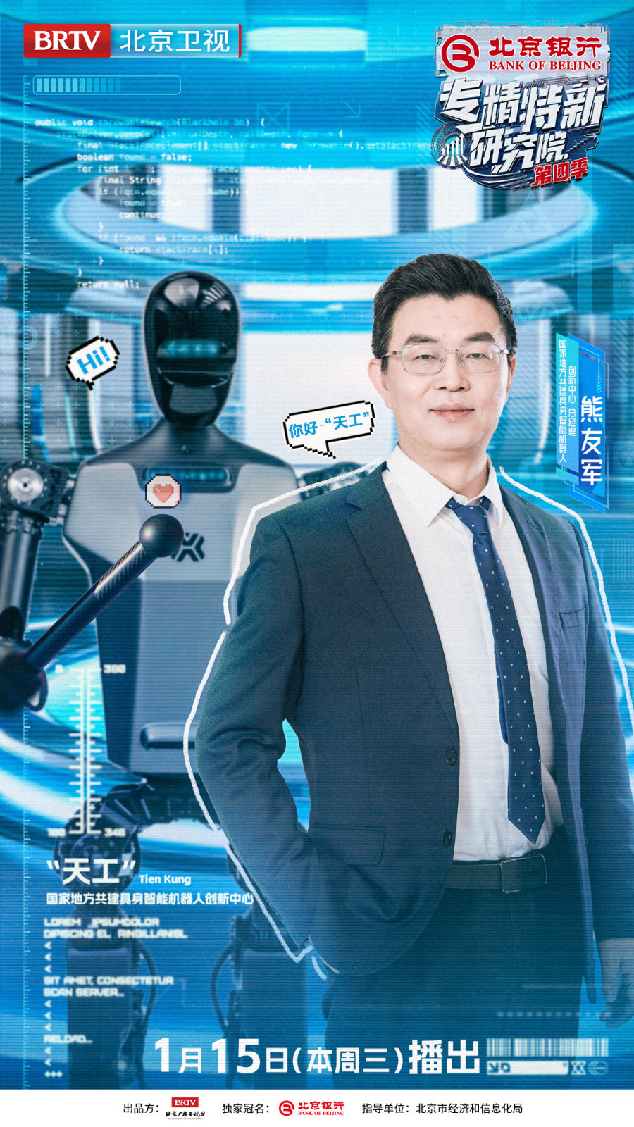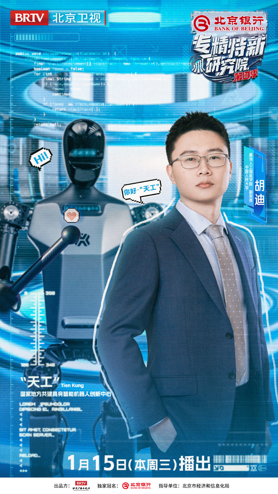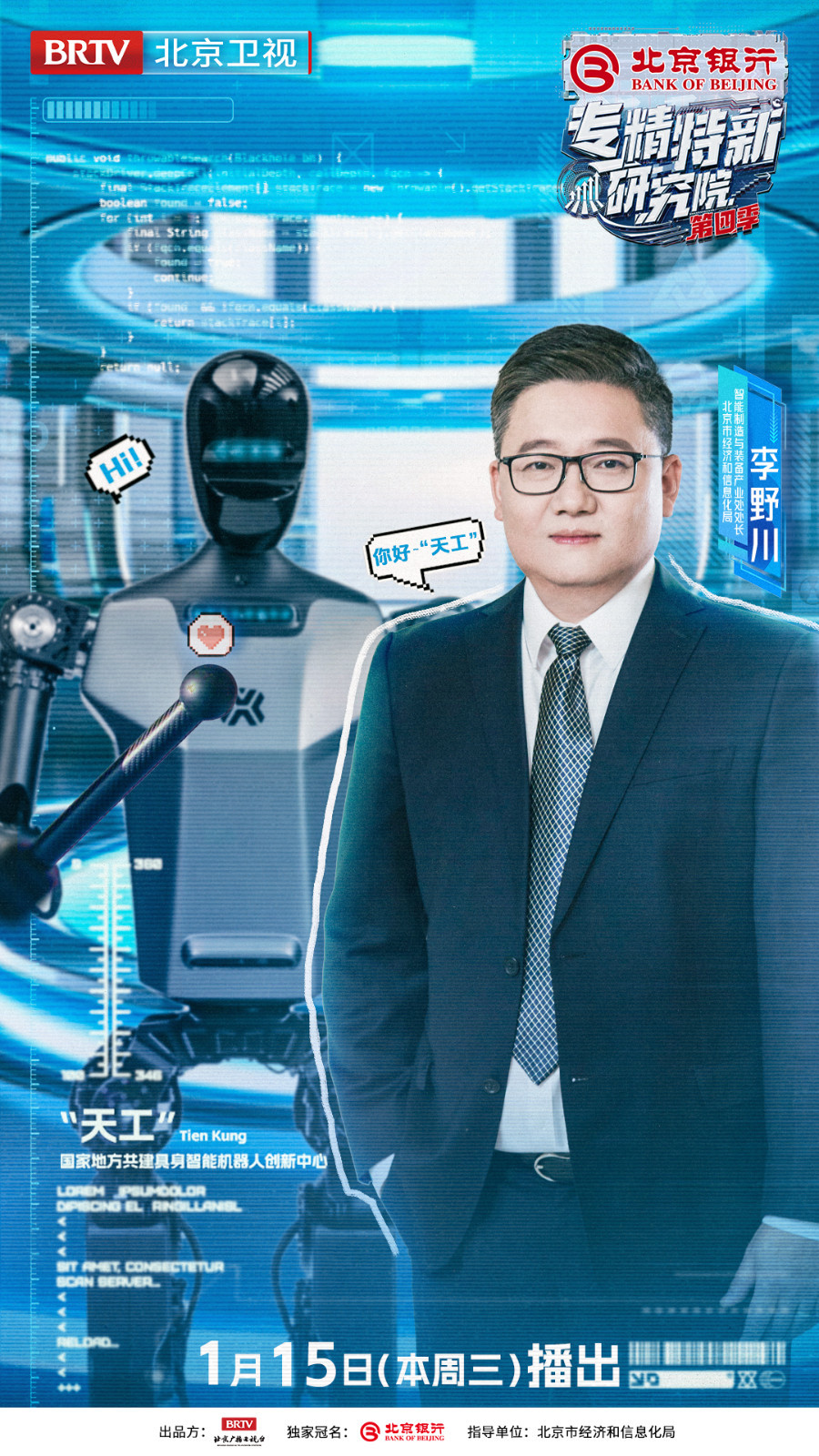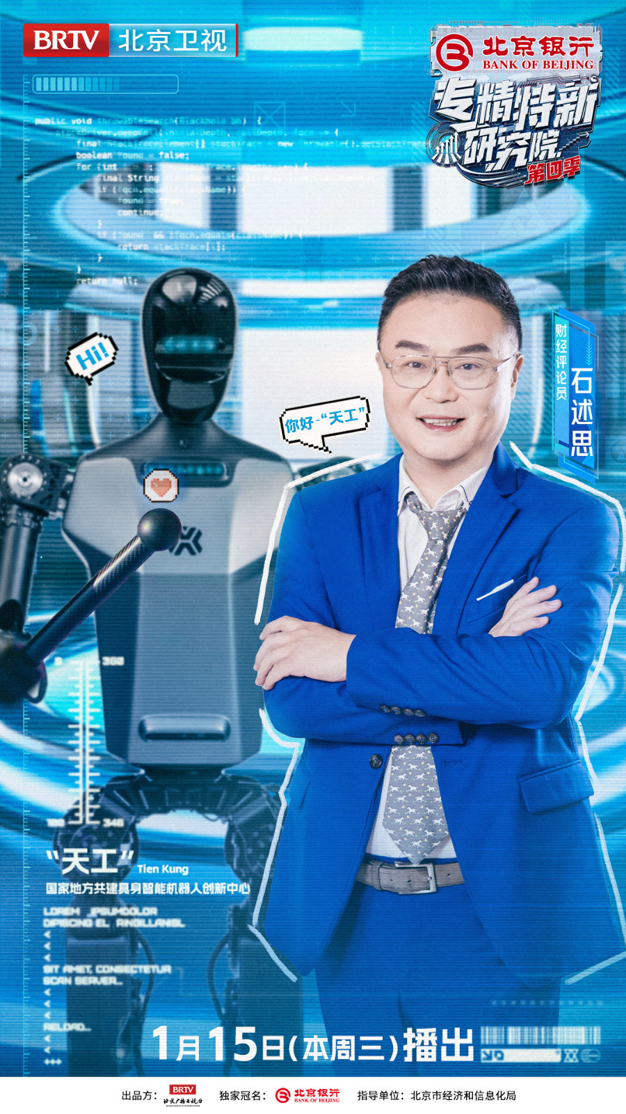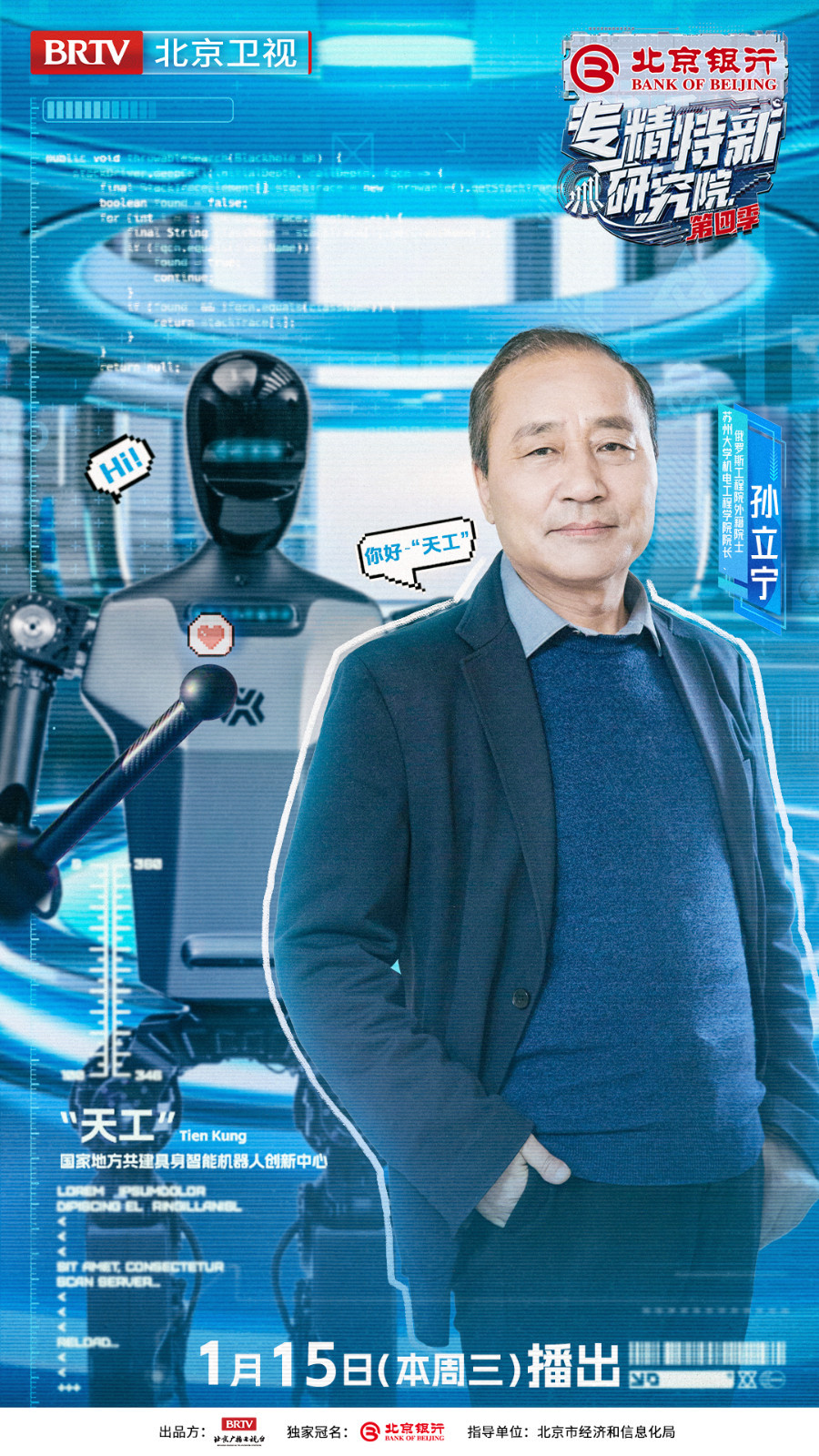 2025年1月15日21:05即将播出《专精特新研究院》第四季第四期,邀请到苏州大学机电工程学院院长、俄罗斯工程院外籍院士孙立宁,北京银行业务总监、中关村分行行长赵政党,北京市经济和信息化局智能制造与装备产业处处长李野川,北京经济技术开发区机器人和智能制造产业局具身智能产业专班主任芦瑜,北京智源人工智能研究院院长王仲远,财经评论员石述思,以及中国人民大学高瓴人工智能学院副教授胡迪齐聚实景研究院,共同走进人形机器人“天工”背后的故事,见证人机共生新时代的到来!