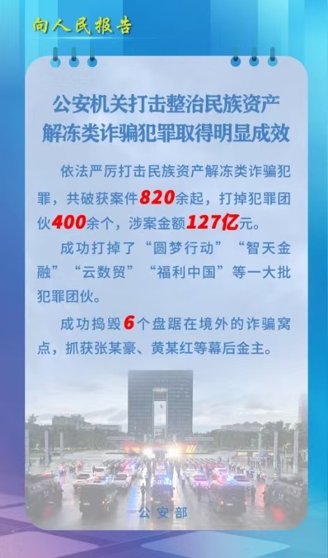 公安机关打击整治民族资产解冻类诈骗犯罪:2024年共破获案件820余起 打掉犯罪团伙400余个