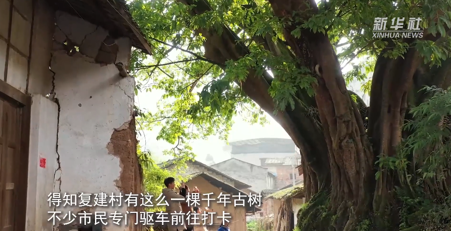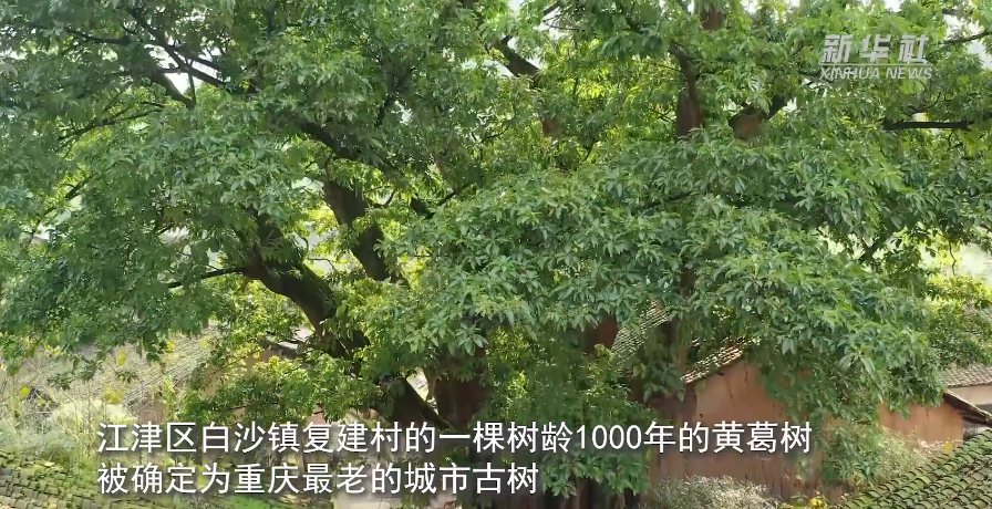 近日,重庆市城市管理局公布了重庆第五次城市古树名木普查结果。位于重庆市江津区白沙镇复建村的一棵黄葛树被确定为重庆最老的城市古树,树龄达1000年。从空中俯瞰,这颗古黄葛树犹如一把巨大的绿伞,为周边的人们遮阳挡雨。