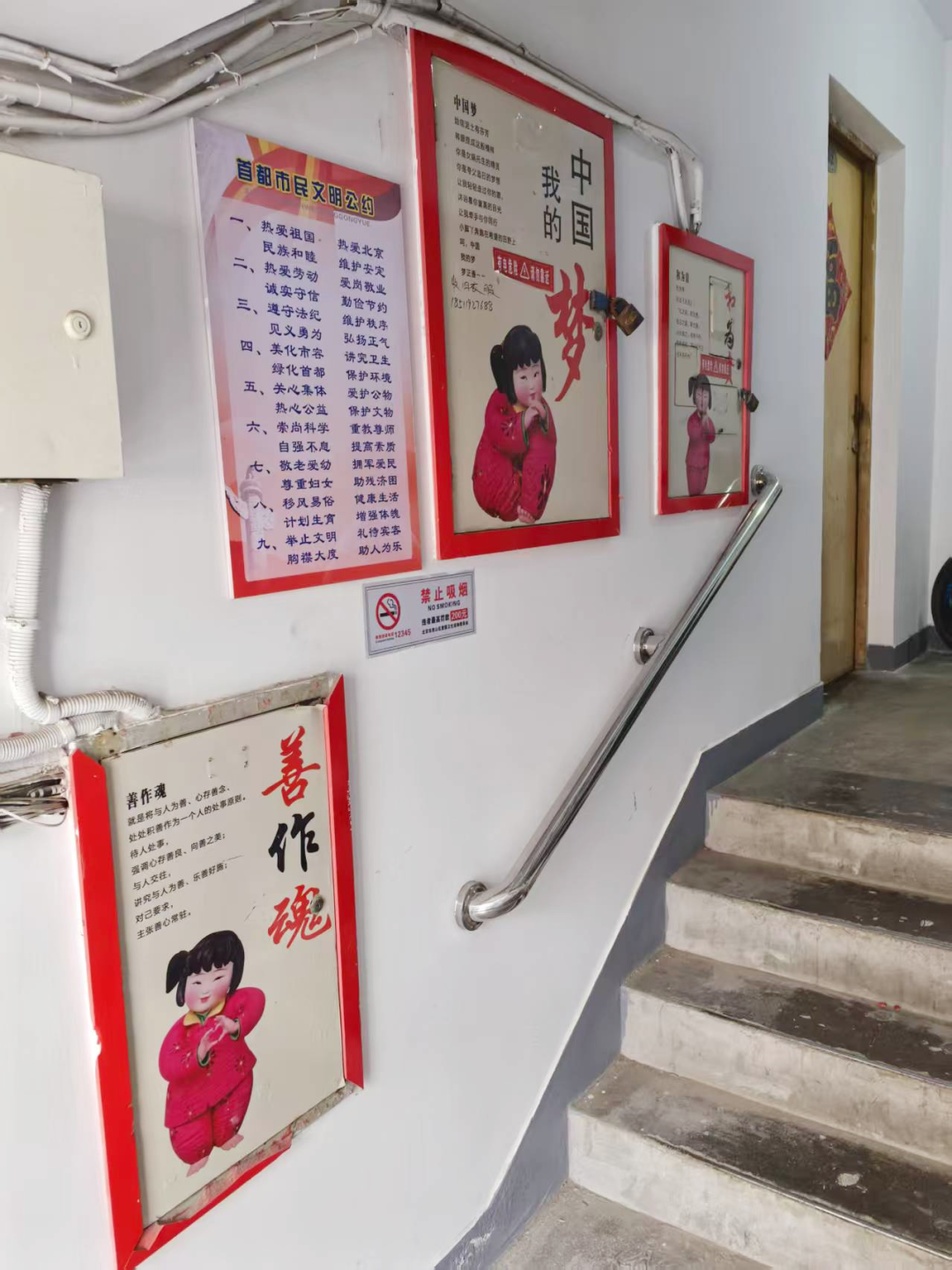 楼道也是居民日常出入的一处公共空间。窦店社区为提升楼道环境的整洁度与美观度,组织专业队伍全面粉刷楼道墙壁,让原本斑驳的墙面焕然一新,为居民营造了更加明亮、清新的生活环境。