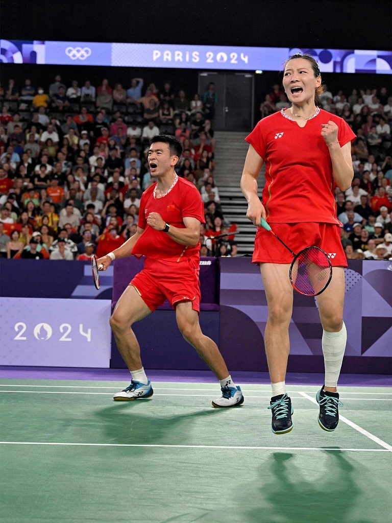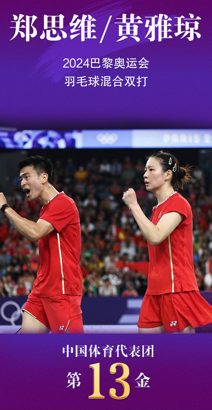 当地时间8月2日下午,巴黎奥运会羽毛球混双决赛在拉夏贝尔体育馆进行。中国队组合郑思维/黄雅琼以2-0战胜韩国队组合金元昊/郑娜银,夺得金牌。