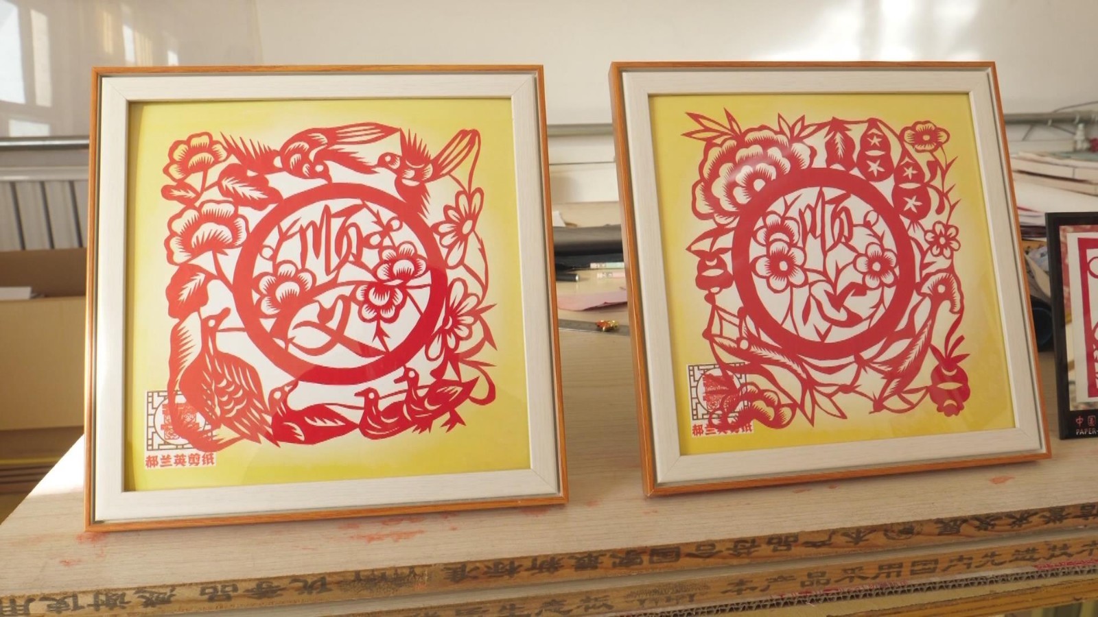 练就了一手好技艺的她,紧跟时代步伐,经常结合传统节日、国家大事喜事等创作剪纸文创作品。桌子上摆放的冰墩墩、雪融融剪纸摆件活灵活现,为了达到“神似”的效果,郝兰英做足了“功课”。她翻阅书籍、查找资料,了解它们的由来和特点,然后揣摩构思,进行创作,力求将这两个吉祥物创作的惟妙惟肖。