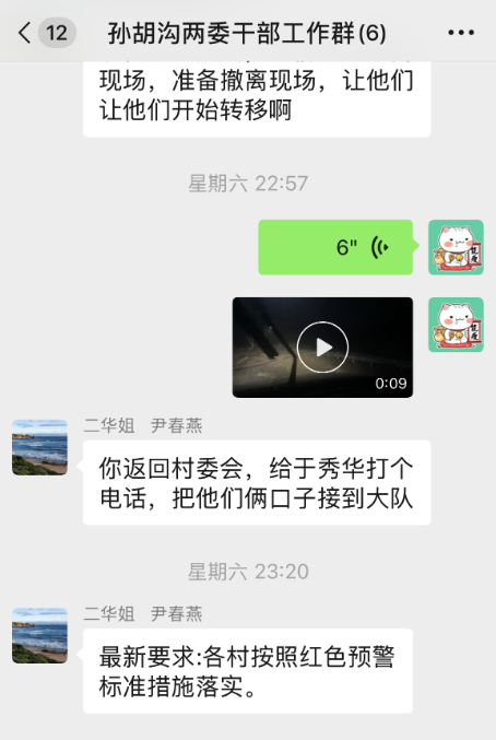 虽身处暴雨,尹春燕仍通过两委干部工作群发出最终指令:“最新要求:各村按照红色预警标准措施落实”。这条消息成为她失联前最后的文字记录。