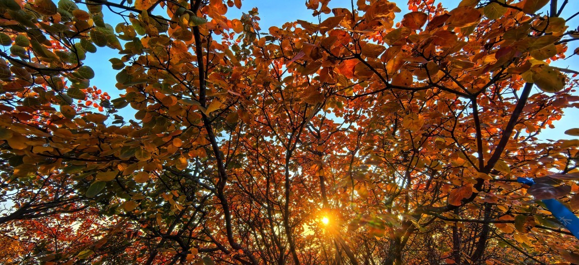 秋日的暖阳透过层层红叶映射下来,似乎也要为红叶添彩。
