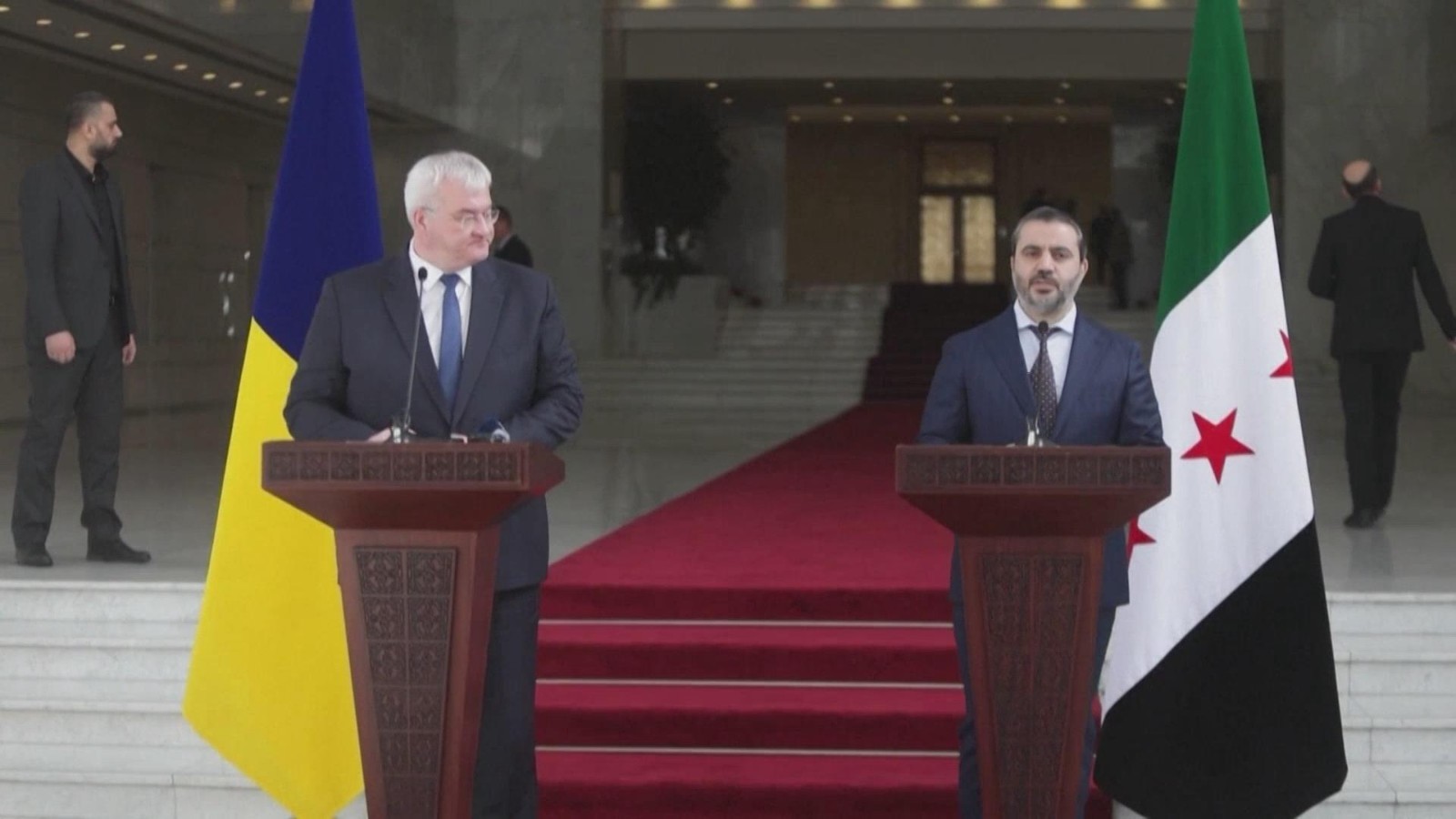 希巴尼和瑟比加之后共同出席新闻发布会。希巴尼表示,叙利亚和乌克兰将在政治、经济、社会和科学层面建立战略伙伴关系。瑟比加称,乌克兰寻求与叙利亚在多个领域开展合作,并将向叙利亚提供粮食援助。