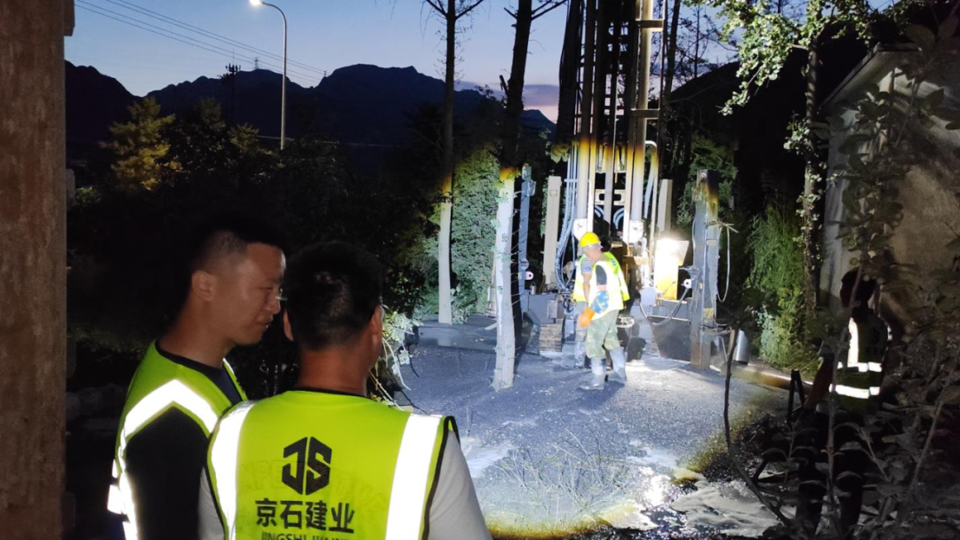 设备进场后,先锋突击队仅用8小时,完成深度50米的施工作业,用实际行动诠释了石景山区属国企的“加速度”。经30个小时连续奋战,8月13日18点20分,成功实现第一口新建自备井出水,切实解决当地700名群众吃水用水问题。