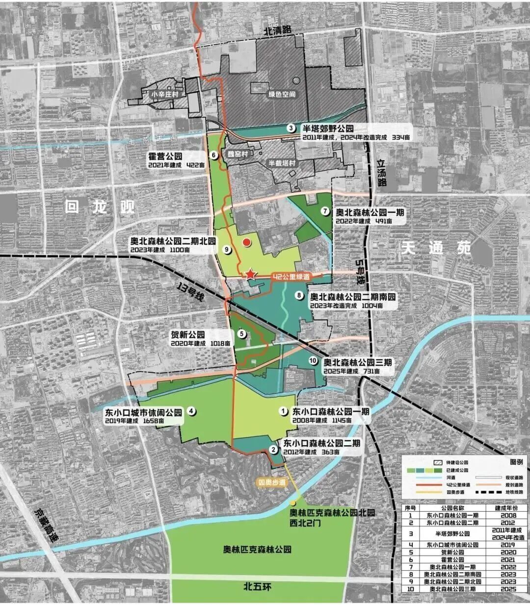 “奥北十园”即回天地区一道绿隔建设的系列公园的总称,通过整合十座公园、统一环境风貌,形成万亩奥北森林公园生态格局。今年,昌平将推动奥北森林公园综合提升工程建设,完善公园内标识标牌系统以及配套服务设施,架设联通桥梁等,实现“奥北十园”与奥森公园联通,构建奥北森林公园活力群。
