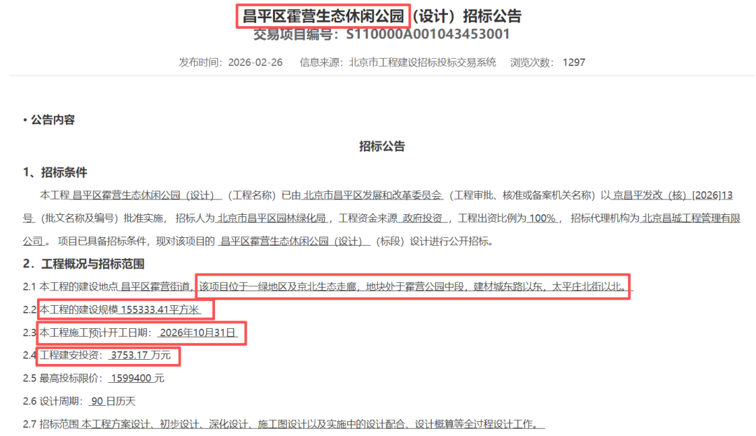 3753万元!昌平这里将建15.53万㎡生态休闲公园!