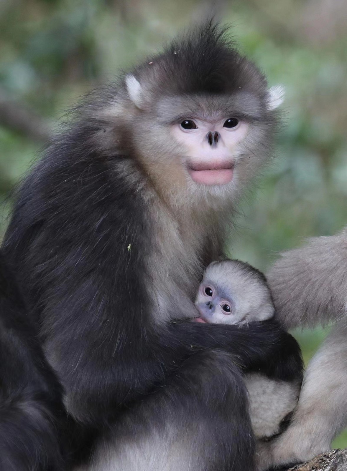 李福惠说,滇金丝猴长得非常漂亮,全身上下毛色黑白,加上鲜红的嘴唇、形成黑白红的经典配色,再加上它的朋克发型、独特的仰鼻,只让人觉得惊艳又耐看。难怪见过它们的朋友都说:如果滇金丝猴没有毛,活脱脱就是个人。