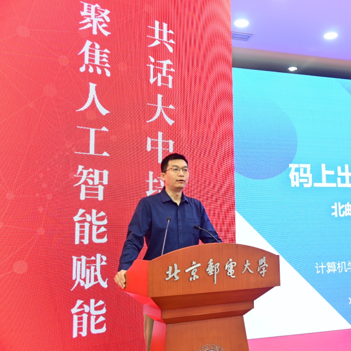 计算机学院网络智能研究中心徐童老师作“码上出发,只争朝夕”的主题分享,介绍了在教育数字化改革旗帜引领下,北京邮电大学在国内率先研发首个大模型赋能编程教学应用平台“码上”的发展历程和应用经验。
